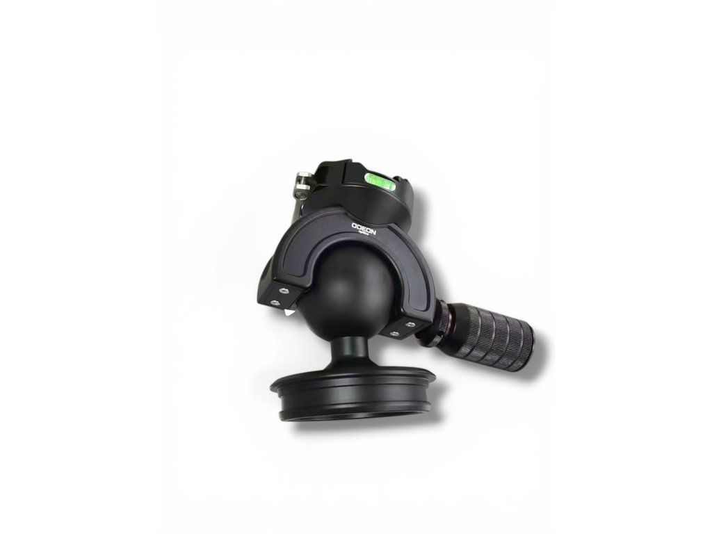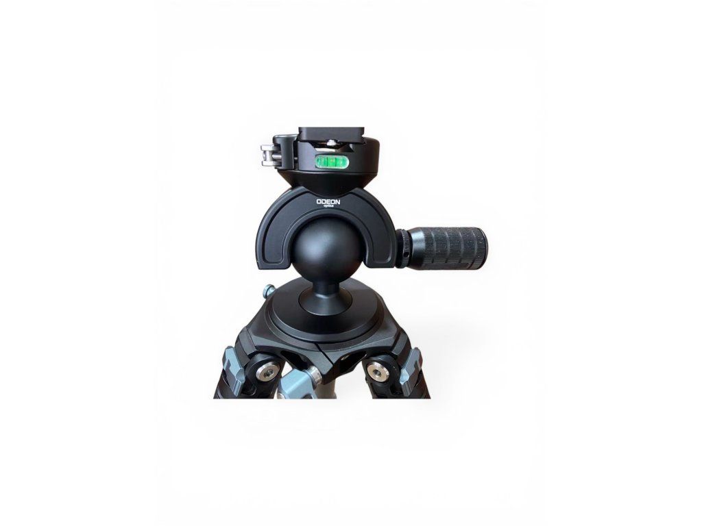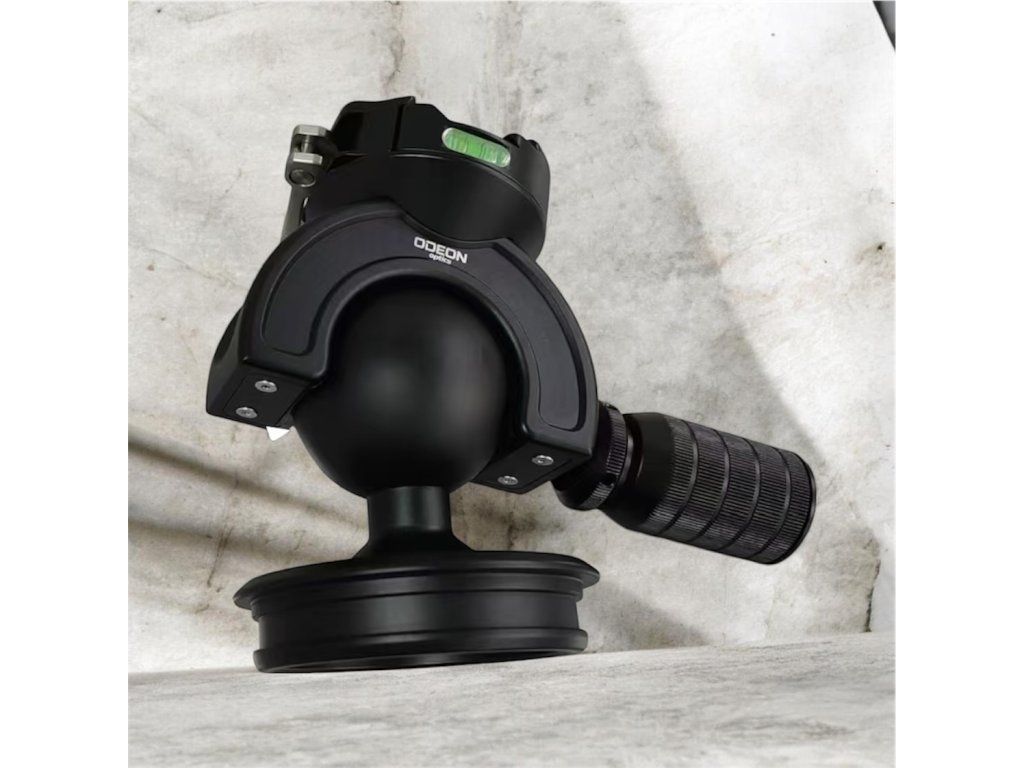 Kulová profesionální hlavice pro stativ ODEON. Průměr misky 85mm. Průměr rotačního kloubu 60mm. Váha 1.14 kg. Rychlá změna náklonu ve všech směrech. Vodováha. Rychloupínací páčka pro upevnění adaptéru pro držák zbraně.